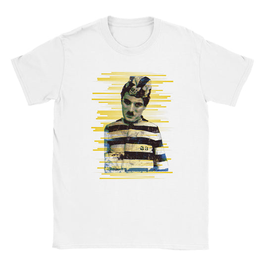 Charlie Chaplain Prison Yellow Stripes T-Shirt - Official Radio Days Licensed Product